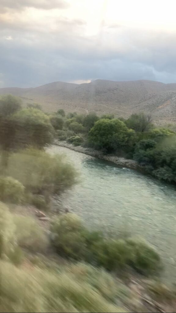 ビシュケク~バルイクチ間は一般的には車での通行がメインで、どうしても電車だと速度が落ちてしまいます。ただ、電車は車道から少し離れて川沿いをずっと走っていくので、より旅情を味わうことができます。夏限定の運行というのもまた旅の特別感を彩ってくれています。