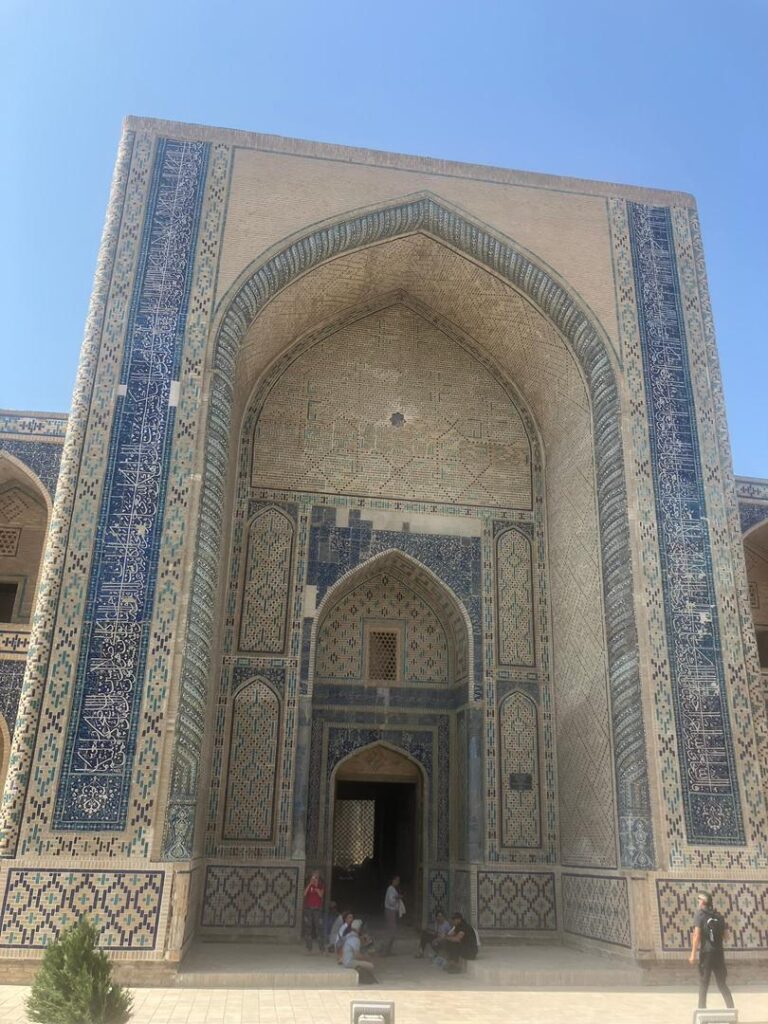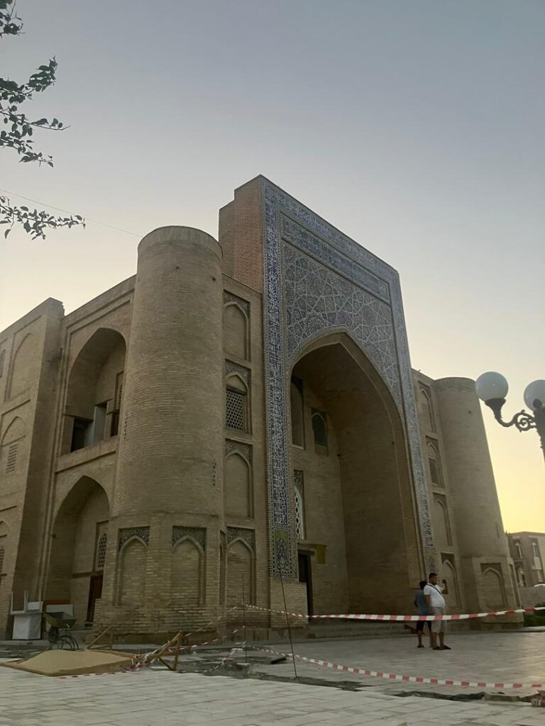 ラビハウズから西に15分ほど歩くと、サマルカンドで見たような青いタイルを用いた建築様式の美しいマドラサが。なんとたった15000ソム≒約180円の入場料で中庭に入って見学できます!なお、入場する際は肌の過度な露出やサンダルは厳禁です。街歩きの際にはあまり気にする必要はないのですが、イスラーム建築の内部を訪れる際は服装に注意しましょう。