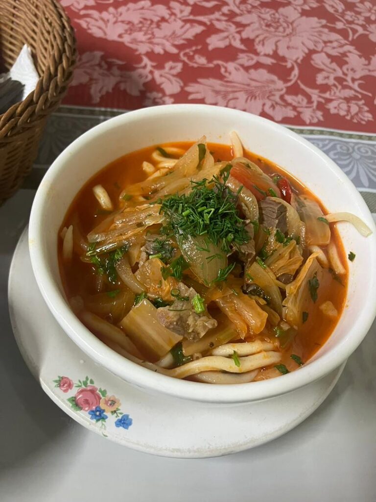 このお店のラグマンはスープ多めで家庭的な優しい味でした。