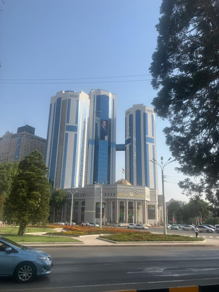 そして、このビルの中心に描かれているように、街中様々なところにラフモン大統領の肖像画が飾ってあります。街を歩いていていくつの肖像画を見かけたか数えてみると面白いかもしれません。