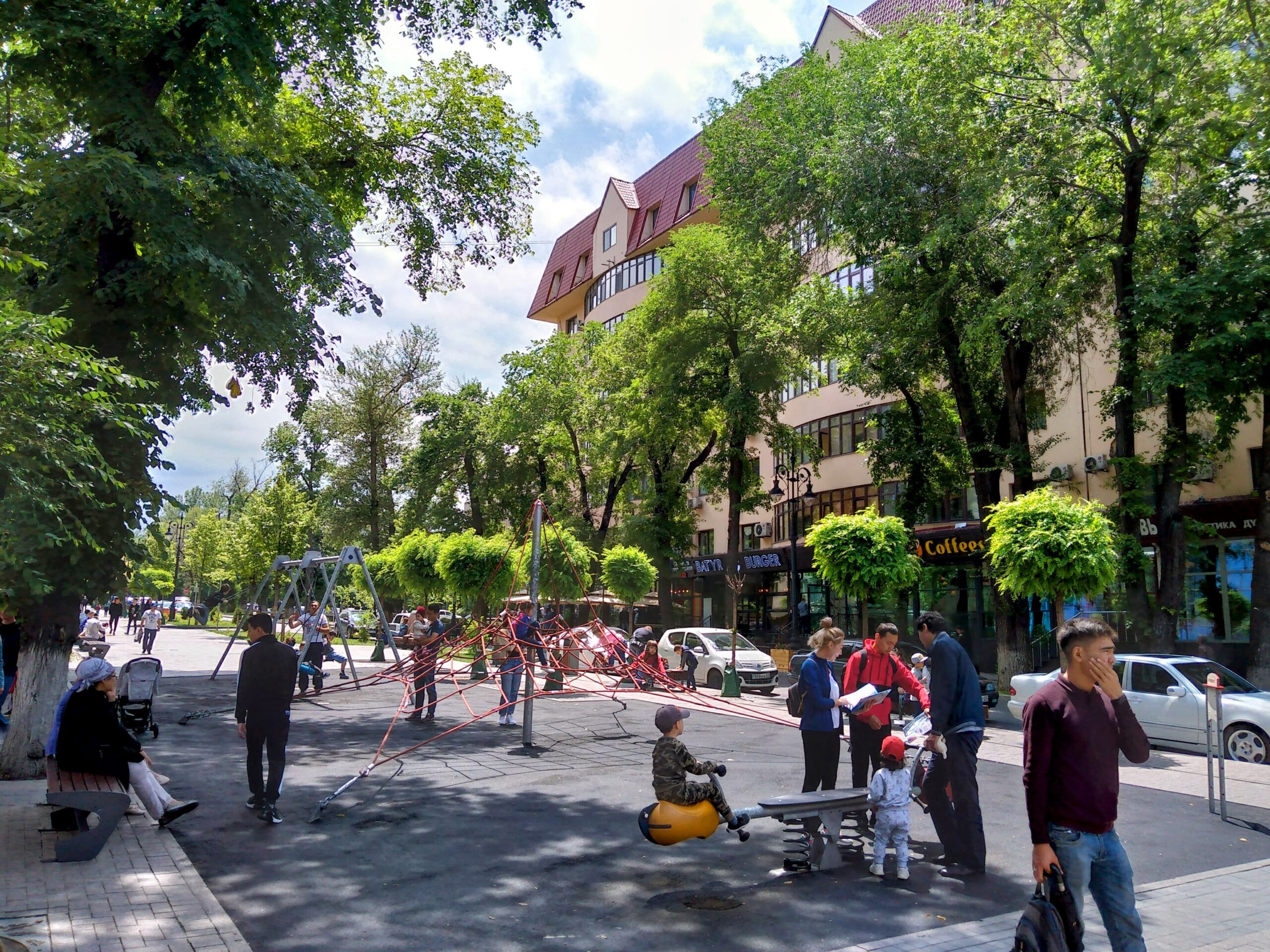 午前:ご宿泊先にて朝食後、アルマティ市内観光(中央バザール、パンフィロフ公園、共和国広場、カザフ民族楽器博物館)。