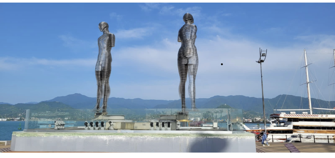 コーカサス地方が舞台の悲恋を描いた小説『アリとニノ』に登場する二人の主人公を模した像。